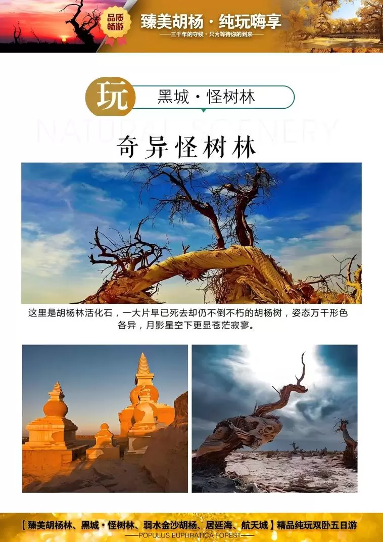 额济纳胡杨林旅游区+黑城弱水胡杨风景区+居延海+东风航天城+怪树林五日游【赠精美旅拍】