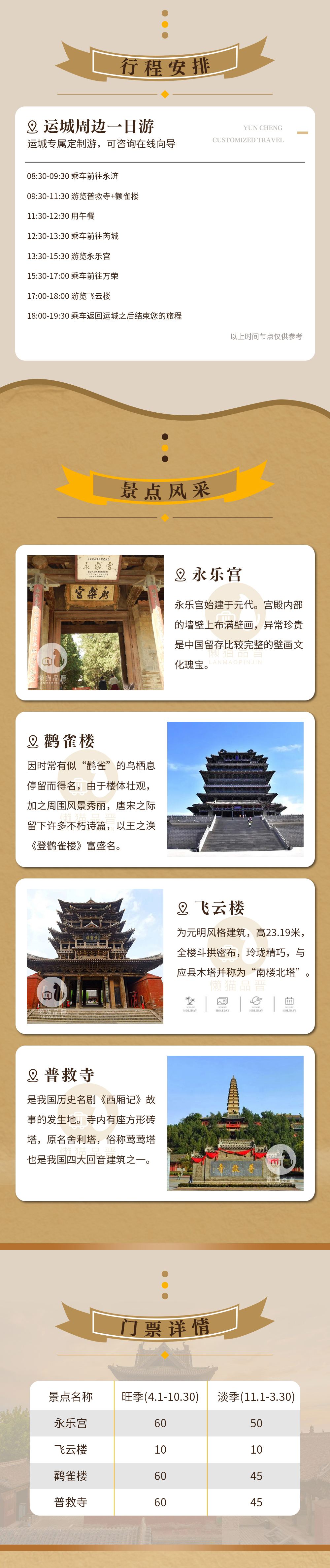 普救寺+鹳雀楼+永乐宫+万荣东岳庙-飞云楼一日游【包车纯玩】【升级一:晚起!慢玩!1对1包车服务,畅玩8.5H,一次玩个够】