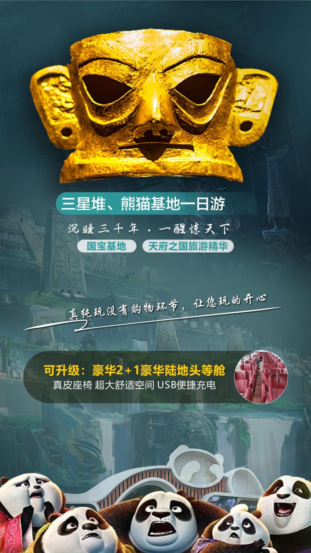 成都往返交通+三星堆门票+熊猫基地门票+司导+三环内包接