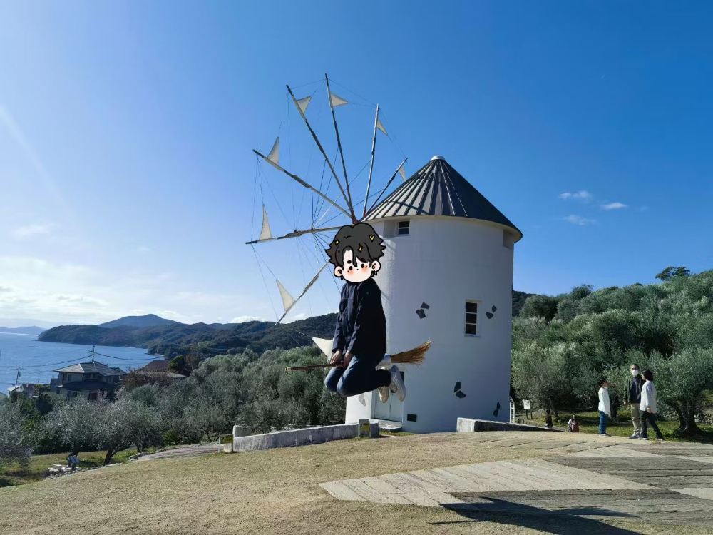 #橄榄公园打卡魔女宅急便风车,同款骑扫把照片