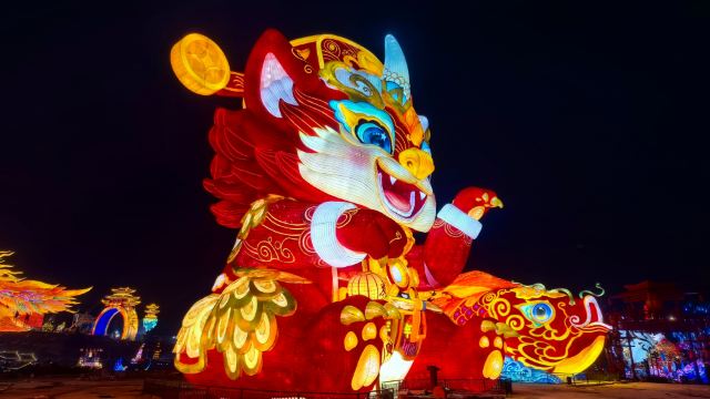 ▲ “年年**——”高22米的“年年**”年兽灯组,搭载AI交互系统,实现远古瑞兽与人类的亲切“对话