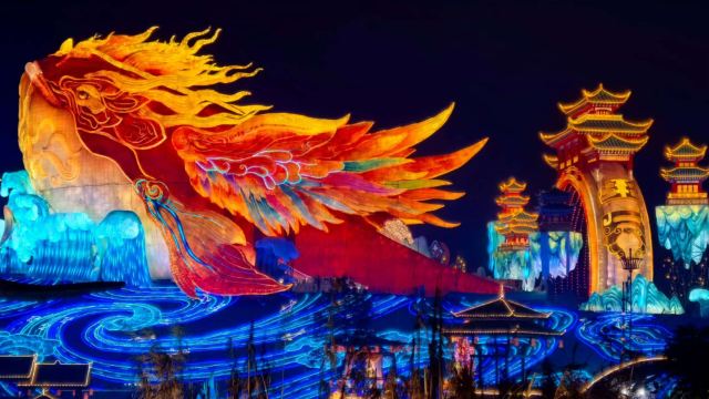 ▲ “神奇华夏”——萃取《庄子》鲲鹏宏大意象的巨型灯组“神奇华夏”,长约210米,通过神话叙事,展现强国风貌与民族豪情
