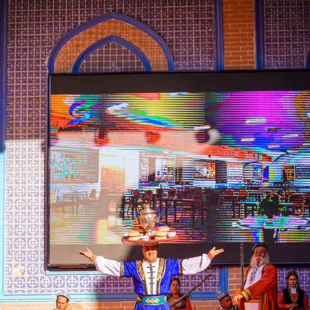 ▲ 维吾尔族古典音乐十二木卡姆,是维吾尔族人民对中华民族灿烂的文化所作的重大贡献,她运用音乐、文学、舞蹈、戏剧等各种语言和艺术形式表现了维吾尔族人民绚丽的生活和高尚的情操,反映了他们的理想和追求以及当时的历史条件下所产生的喜怒哀乐。她集传统音乐、演奏音乐、文学艺术、戏剧、舞蹈于一身,具有抒情性和叙事性相结合的特点。这种音乐形式在世界各民族的艺术史上独树一帜,堪称一绝。