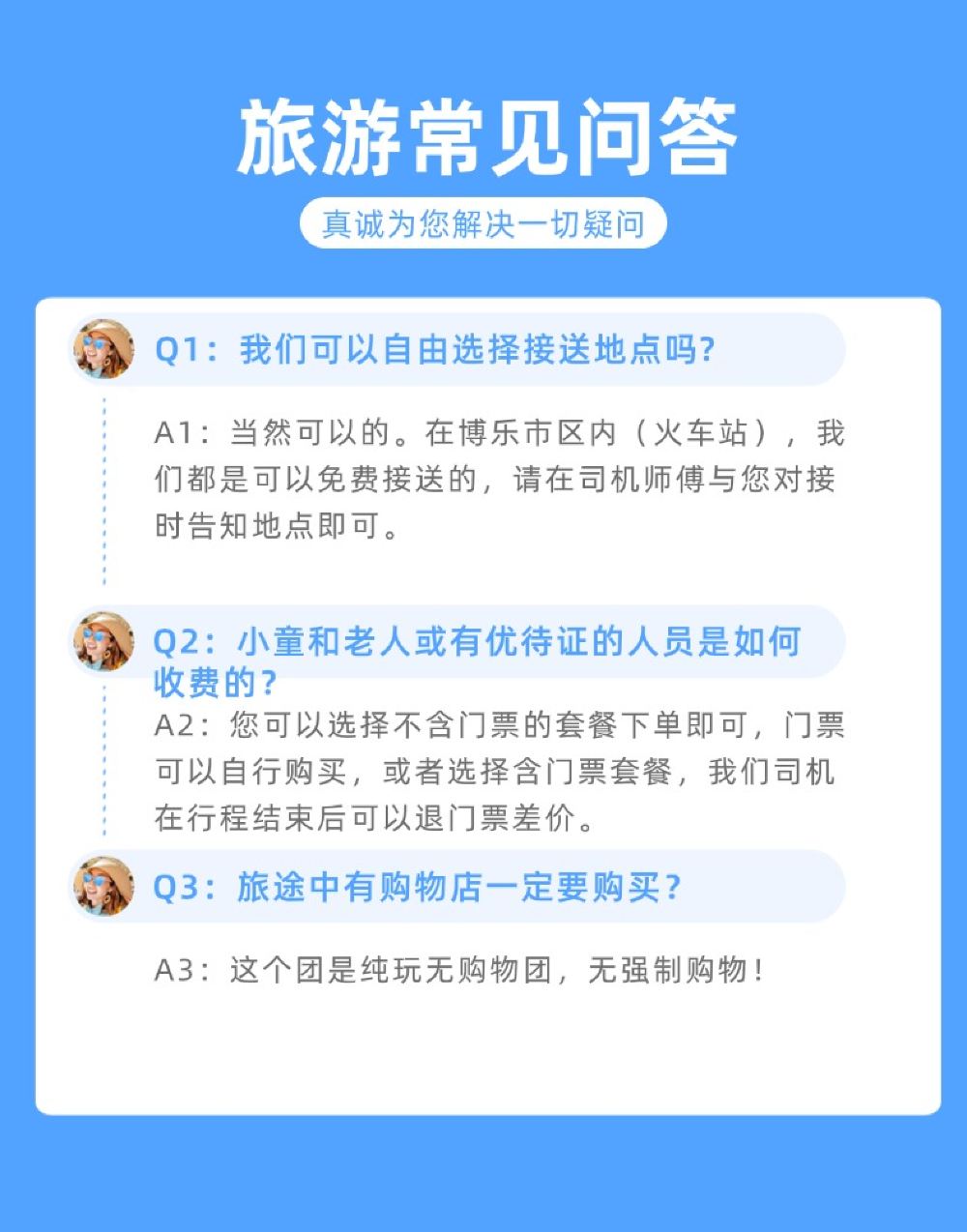 博乐市和双河市市区免费接送,博乐市火车站、机场可接送。
