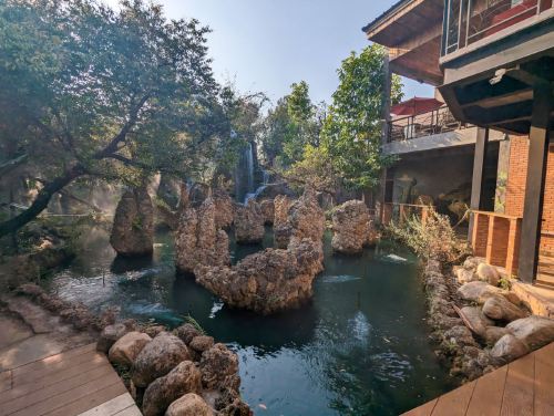 ▲ 茂密的树木与人造池交织成一幅画,四周会喷洒水雾,让闷热的泰国也变得凉爽起来。洒落树叶间的阳光遇到水雾呈现朦胧感,想拍出有仙气的美照来这里就对了!