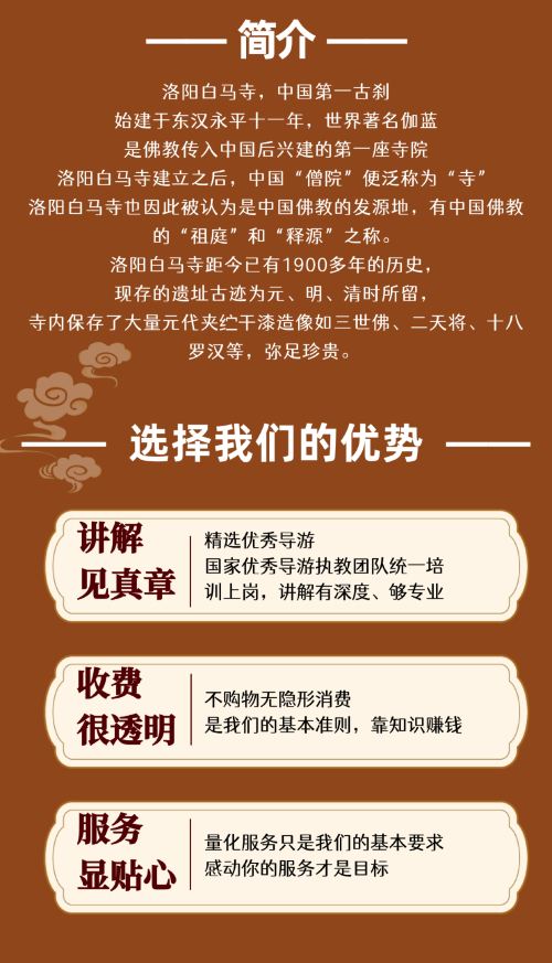 白马寺 1H专业导游深度讲解 /包含耳麦/可选拼团或包团【[白马寺]因“白马驮经”的典故得名,沿中轴线分布,有天王殿、大佛殿、大雄殿】