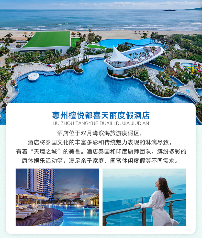 惠州双月湾檀悦都喜天丽度假酒店+自助早餐+无限次水上乐园