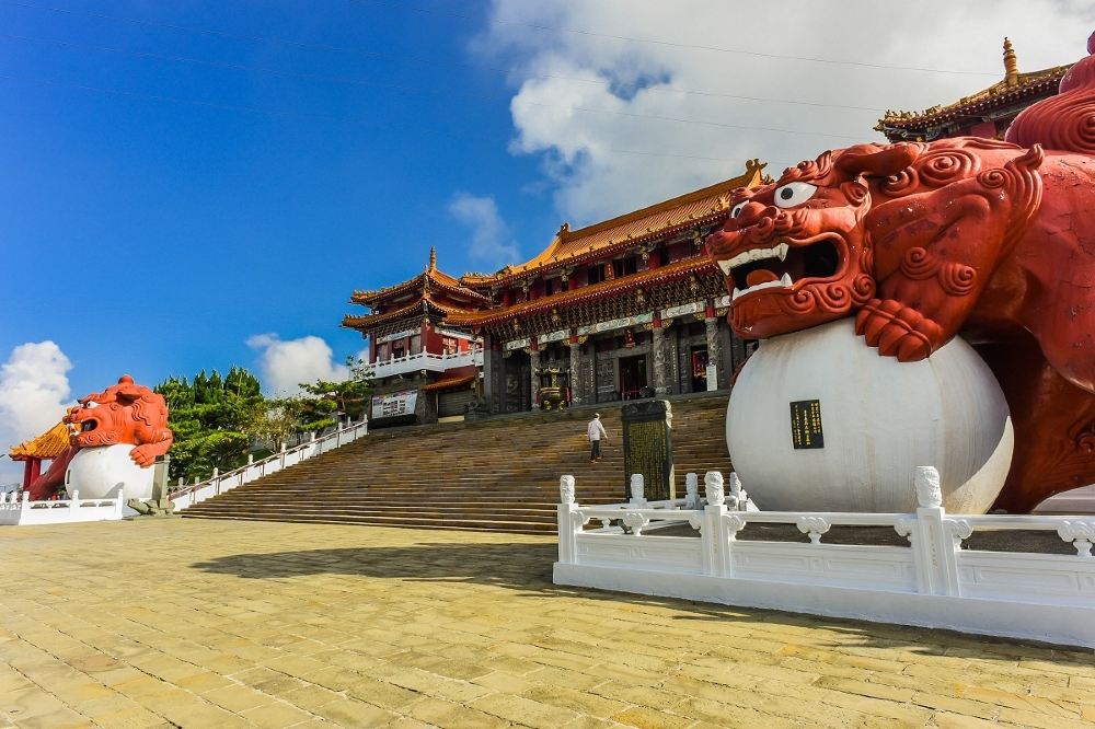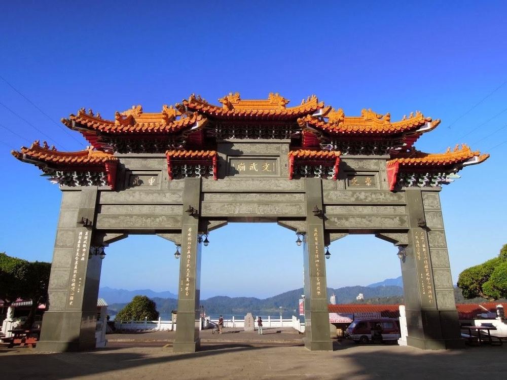 ▲ 【日月潭文武庙】 庙的方位採「坐东向西」背山面湖,气势磅礡。文武庙依山势筑,游客可向高处走,在櫺星门前的殿堂顶楼有文武庙的眺望台(观景台),居高的视野配上浓厚的中国风建筑,是日月潭漂亮的景致。