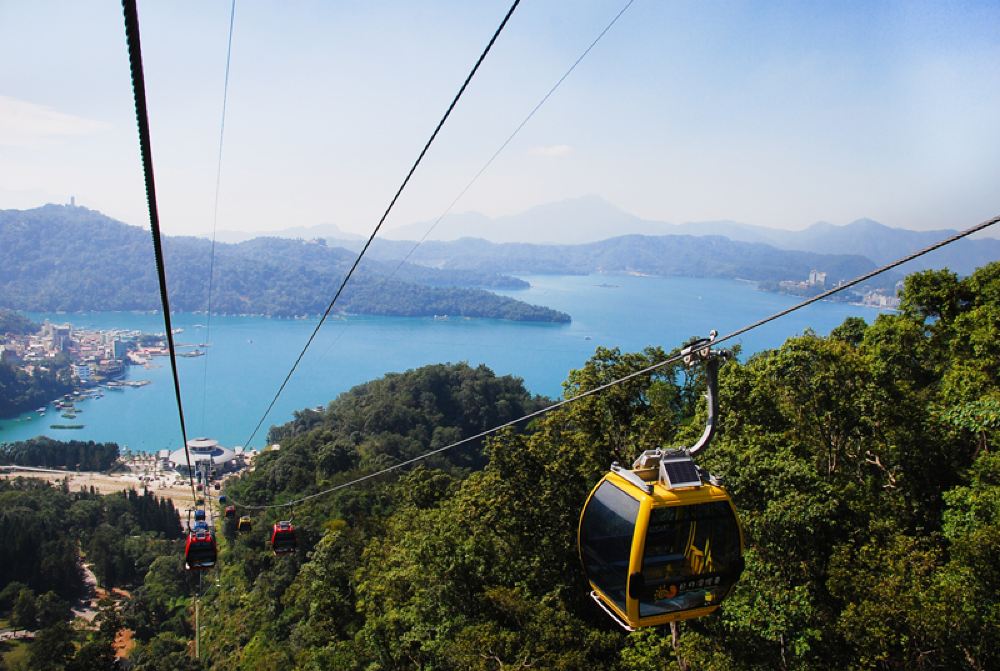 ▲ 【日月潭缆车】(1小時) 游日月潭,除了湖畔漫步、搭船游湖之外,还可以从空中搭乘缆车俯瞰日月潭,感受全新的视野角度。晴天搭乘,日月潭的山光水色可以尽收眼底,下雨或起雾时,也有泼墨山水的意境。 ※日月潭缆车遇保养日时,此景点则换至妮娜巧克力城堡替代,不再另行通知。