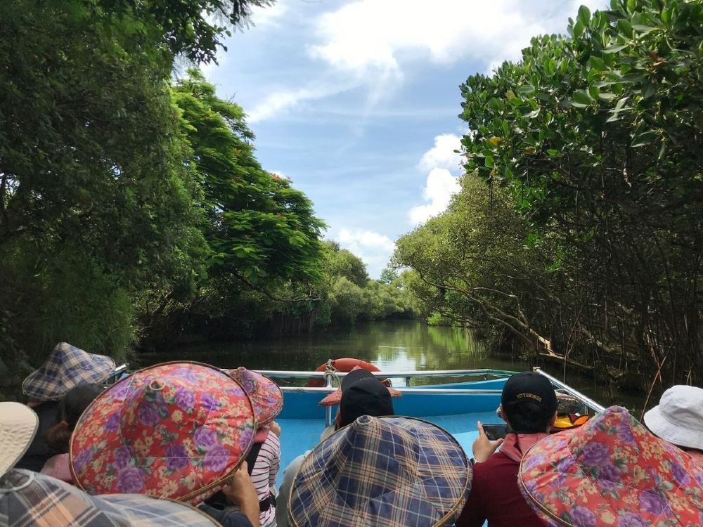 ▲ 【台南四草绿色隧道】 四草绿色隧道这条河道因两侧遍布树龄逾50年的原生红树林,自然形成一弯如隧道般的景象,号称「迷你版亚马逊森林」,同时也是台湾著名的水上绿色河道。 隧道两旁不时有鹭鸶、夜鹭或其他鸟类低空飞过,四草大众庙红树林保护区林相优美,拥有五梨跤、水笔仔、榄李、海茄苳四种红树林。船上的解说员也会沿途细说当地生态,游客也亦可透过望远镜观察红树林下的招潮蟹、弹涂鱼等生物,是生态旅游的热门场域,亦是摄影师喜爱捕捉的自然美景。
