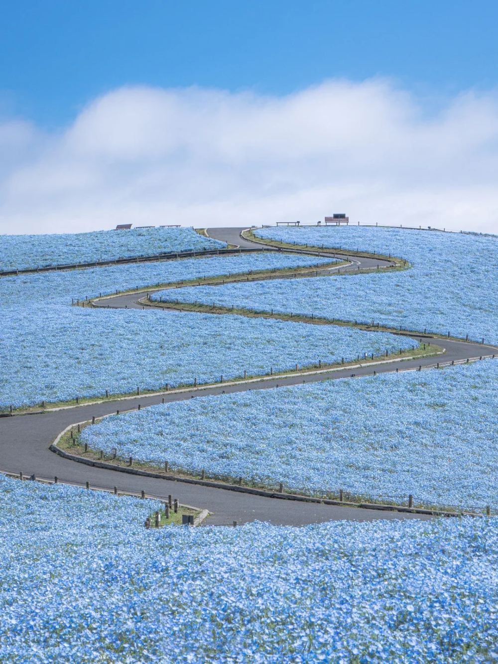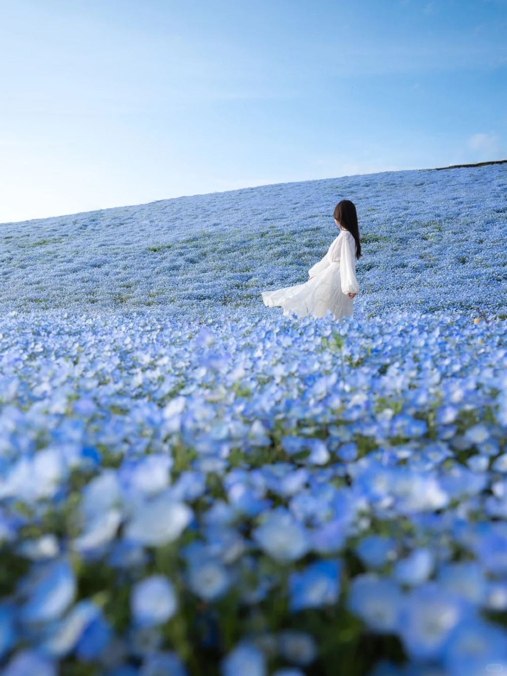 ▲ 这片海岸沙丘地起伏缓和而辽阔,一年四季开满不同的鲜花,春天是郁金香、水仙花、粉蝶花争妍;夏天有百日草、薰衣草、向日葵盛开;秋日里波斯菊和地肤是当仁不让的主角;寒冬则是冰郁金香和梅花。每逢4月下旬至5月下旬(此为参考时间,2025年预估为4月05日-5月03日),这里都会绽放450余万株风姿绰约的蓝白色粉蝶花,远处还能看见蔚蓝的大海天空、大海、花海,令你犹如坠入阿凡达潘多拉星球的蓝色世界。