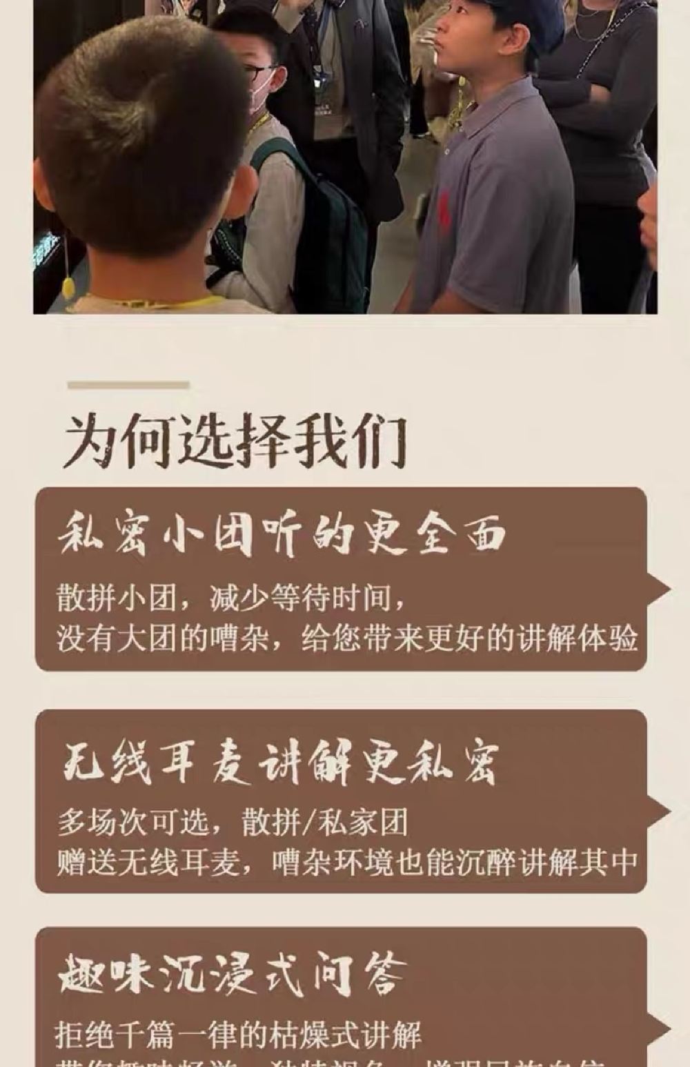 ▲ 【入馆方式】:门票需自行预约,提前五天可在微信公众号预约门票,预约之后可刷身份证或预约码进馆 【散拼团】:3周岁及以上均需购票 讲解票为一人一票的形式 未成年禁止单独参加,需家长陪同购票