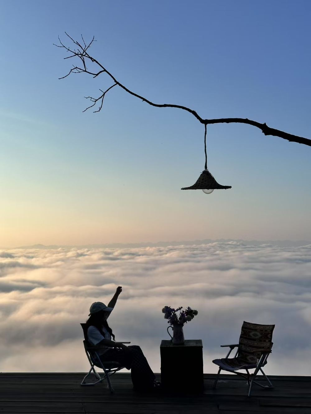▲ 结束之后前往玉皇顶上,品尝一杯悬崖咖啡,一杯手冲咖啡的热气袅袅升起,黔西南的山川晨光交融——这里的美景峰林如海,云雾如纱不只在脚下,更在手中