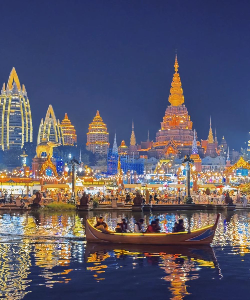 ▲ 告庄夜市,西双版纳的梦幻之地。当夜幕降临,这里就像被施了魔法。璀璨灯光下,五彩的傣式建筑熠熠生辉。