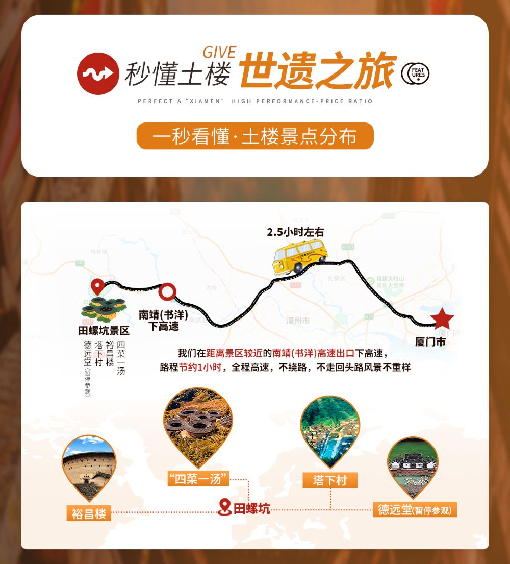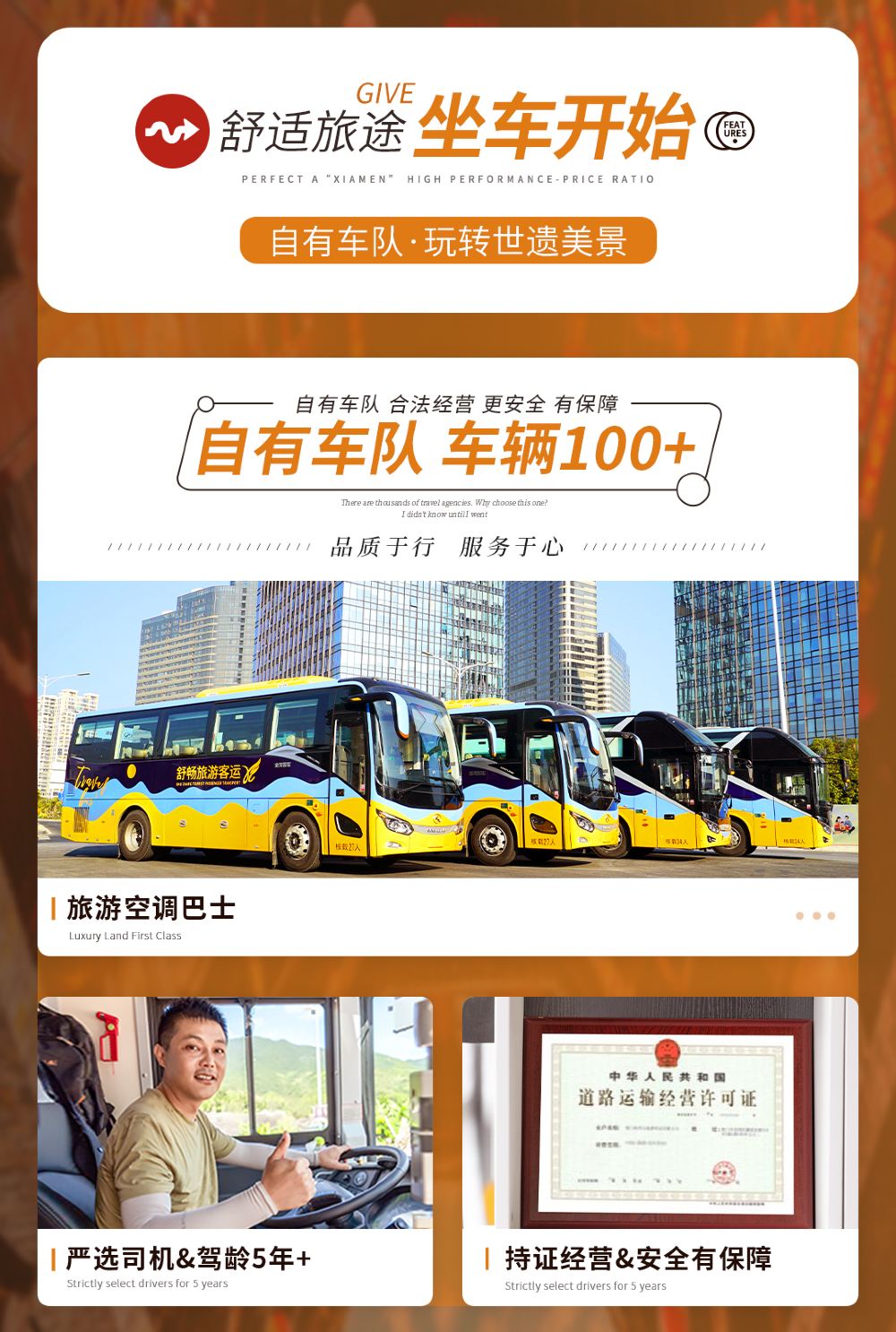 2、本产品按实际人数安排合适车型,并根据先到先上车原则,不预留位置,不接受指定座位,在不影响您行程的情况下,可能会南靖土楼和永定土楼共用车辆,交通过程中需要更换车辆,敬请谅解~