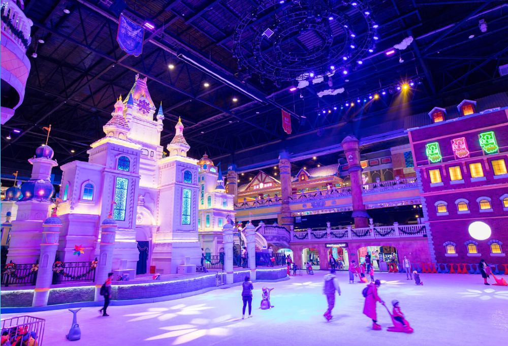 内冰雪主题亲子乐园。园区主要分为圣诞世界、白色城堡、翡翠谷和雪猫小镇四个主题区域,每个区域都是依据故事背景而建。