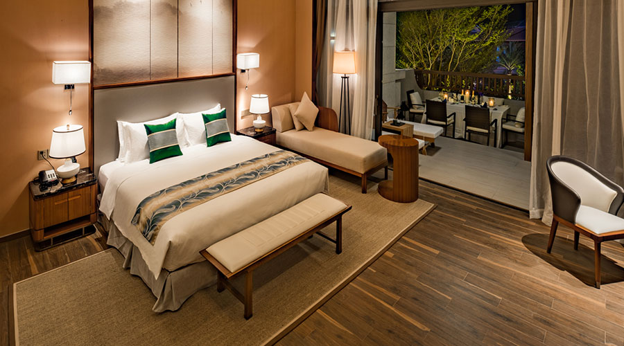 酒店客房全部配备休憩大露台及大落地玻璃窗,把窗外景致引入室内,实现人与自然的无缝衔接,带您逃离城市压力,重归身、心、灵统一的自然纯粹体验。