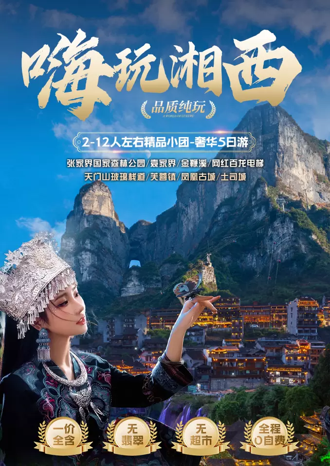 张家界国家森林公园+天子山风景区+袁家界景区+天门山国家森林公园+凤凰古城+芙蓉镇五日游【接送站服务】