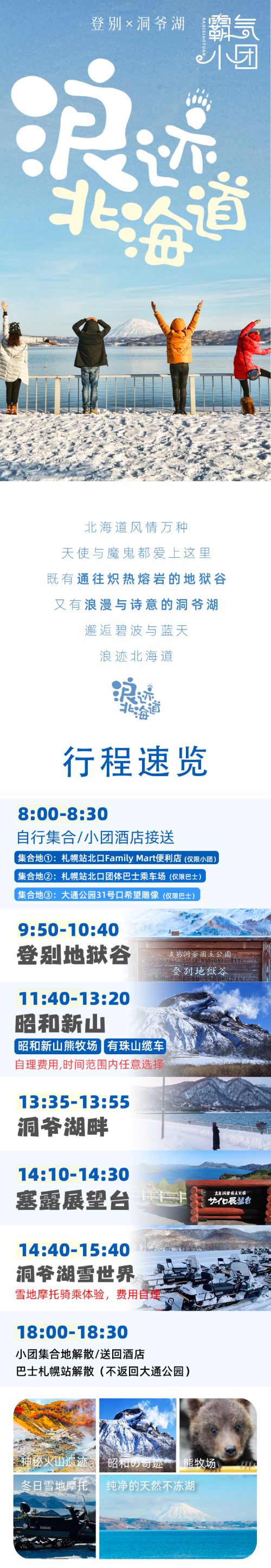 北海道 登别洞爷湖一日游【9人小团/巴士团 |可选酒店接送】【[经典路线]不冻湖洞爷的天然纯净丨火山遗迹地狱谷丨昭和新山萌熊出没】