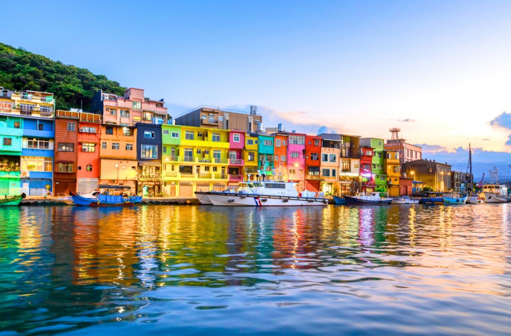 台湾著名的打卡景点之一。这些彩色街屋原本是渔港旁的老旧建筑,后来在地方政府和社区的努力下,将其外墙漆上了缤纷的颜色,形成一道亮眼的城市景观。每栋房子的颜色从明亮的红、黄、绿到深蓝,宛如彩虹一般,与渔港宁静的海景相互映衬,成为当地的一大特色。
