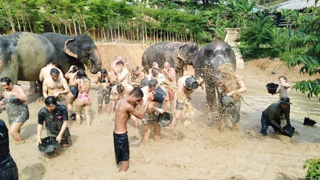 ▲ 半日游活动:观看大象享受泥浆浴,给大象洗澡,和大象一起游泳