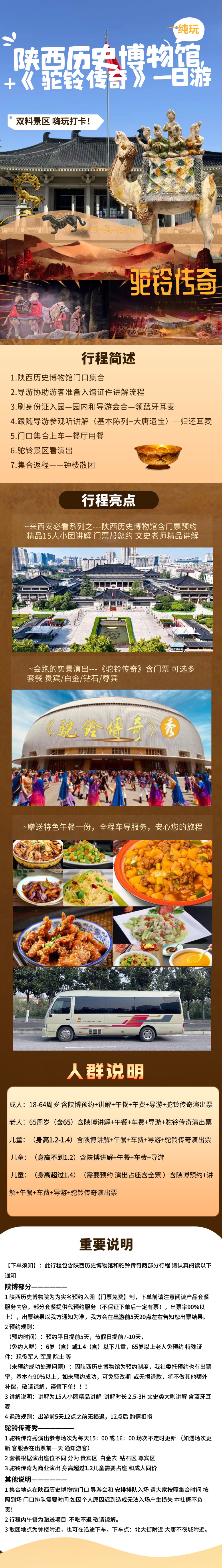 【下单须知】:此行程包含陕西历史博物馆和驼铃传奇两部分行程 请认真阅读以下通知