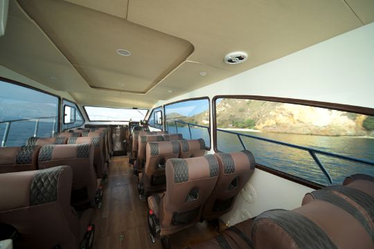 下拉布安一日游:快艇前往科莫多国家公园【徒步登上帕达尔岛**,欣赏令人叹为观止的全景风光,探访因独特粉色沙滩而得名的粉红沙滩。 寻找地球上*大*强大的蜥蜴——科莫多龙 在Manta Point附近清澈见底的海域中,寻觅难以捉摸的巨型魔鬼鱼身影。】