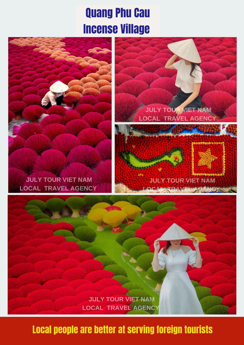【广富桥香村 Quang Phu Cau incense village】,以其传承数百年的制香传统吸引着众多游客。广富桥之旅将带您领略越南旅游的原汁原味魅力,揭开这座迷人城市的神秘面纱。