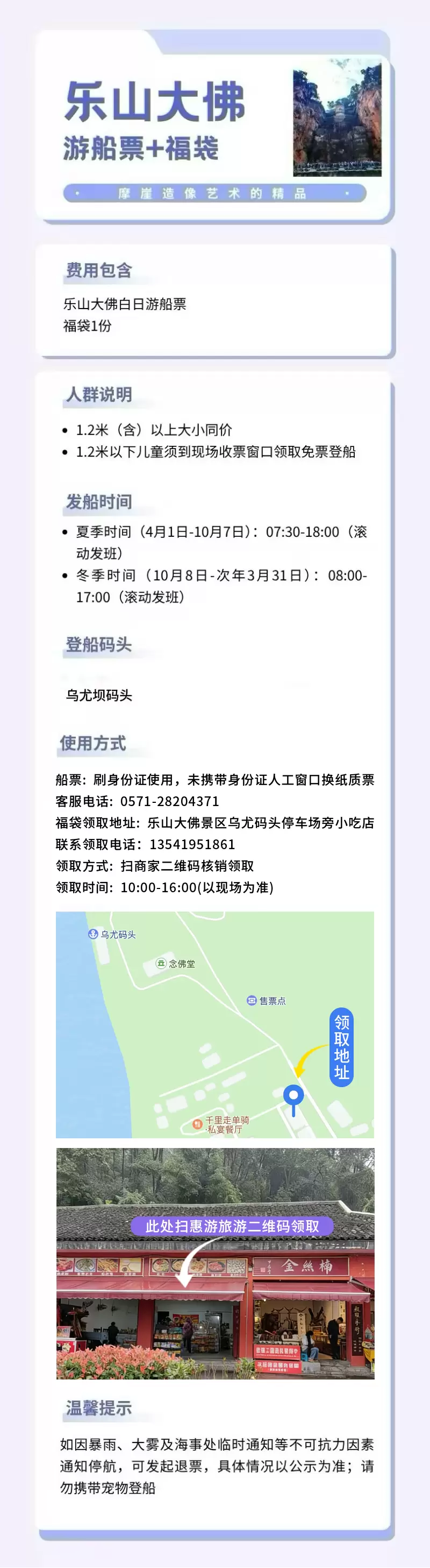 乐山大佛白日游船【乐山大佛游船+福袋/人工讲解】