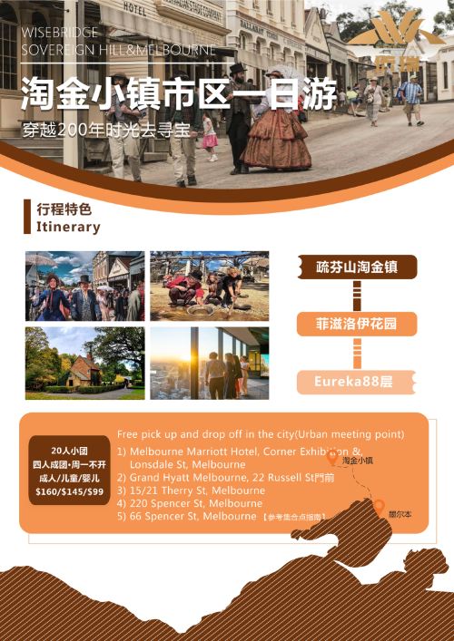 【品质双拼团】墨尔本疏芬山淘金小镇+市区打卡一日游【[淘金岁月]疏芬山淘金小镇,穿越19世纪黄金热,亲手体验淘金乐趣,感受矿业历史的真实脉动。】