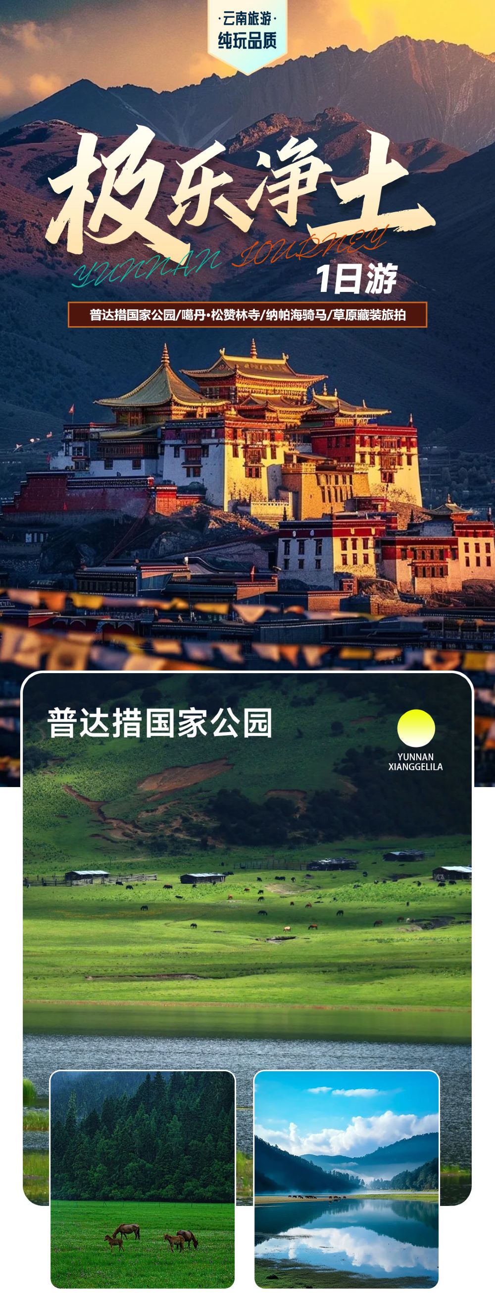 极乐净土-普达措/松赞林寺+纳帕海草原骑马+藏装旅拍含装造【2人起成团说走就走,一单一团,拒绝拼团,拒绝走马观花,行程宽松且自由,方便且快捷,让旅行更有意义】