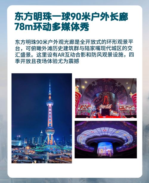 ▲ 263 米主观光层:360° 环形全玻璃幕墙观景台,视野开阔,可清晰眺望陆家嘴 “三件套”(上海中心、环球金融中心、金茂大厦),以及黄浦江对岸的外滩万国建筑群、南浦大桥、杨浦大桥等。白天看城市繁华,黄昏与夜景更是出片胜地;观景半径可达 18 公里