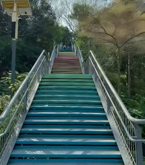 ▲ 顺德华盖山栈道是佛山市顺德区大良街道的一处环山空中步道,它巧妙地将城市繁华与自然静谧融为一体,栈道全长约1.6公里,宽约2米,采用钢结构建造。它设有3个主要出入口和3个次要出入口,主要出入口分别位于莘村大街二巷南侧、华盖路步行街东侧和凤山路北侧,方便您从不同方向进入。栈道依山而建,坡度平缓,华盖山虽然海拔不高,但植被覆盖率高达90%,栈道穿梭于郁郁葱葱的树林中,形成了独特的“空中绿色长廊”,被誉为顺德老城区的“城市绿肺”。沿途设有多个观景平台,其四层观景台是俯瞰大良旧城区风貌的好位置。
