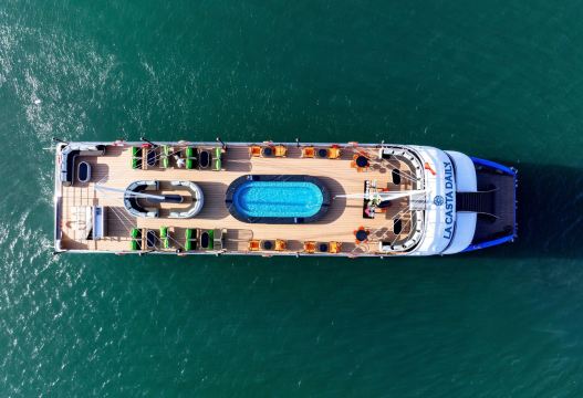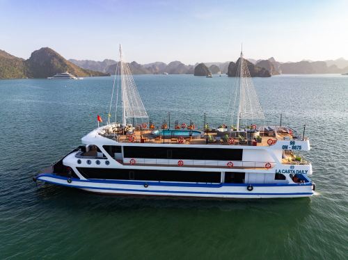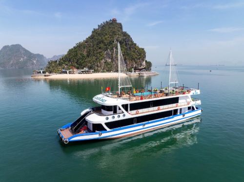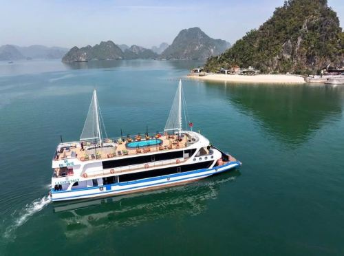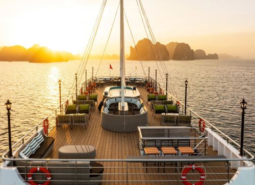 ▲ 下龙湾 7 小时豪华游船之旅,含自助午餐、按摩浴缸和河内豪华轿车接送——享受一整天的 VIP 下龙湾之旅,欣赏美景,品尝美食,享受舒适的接送服务。
