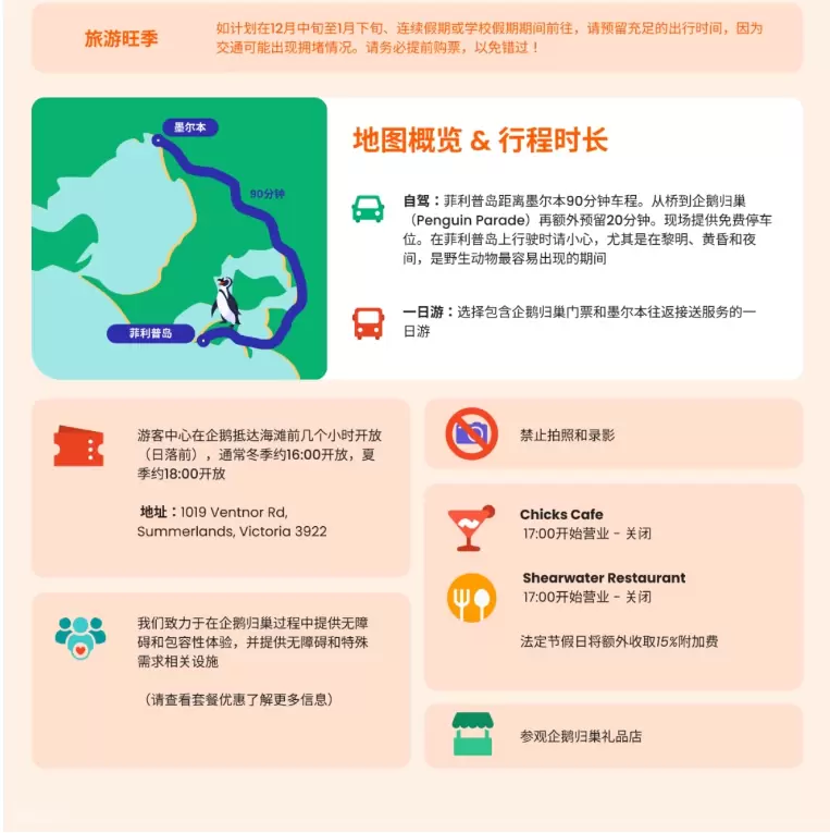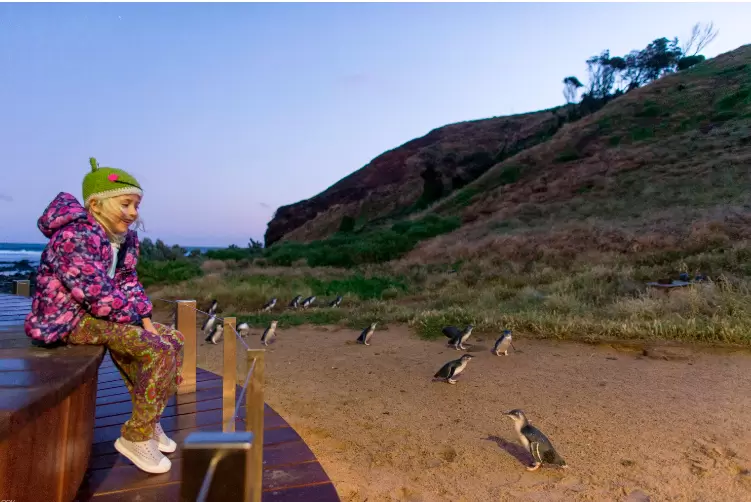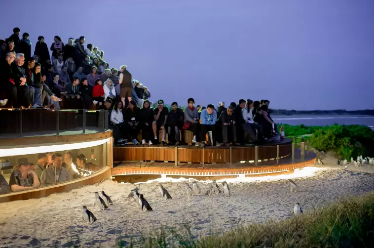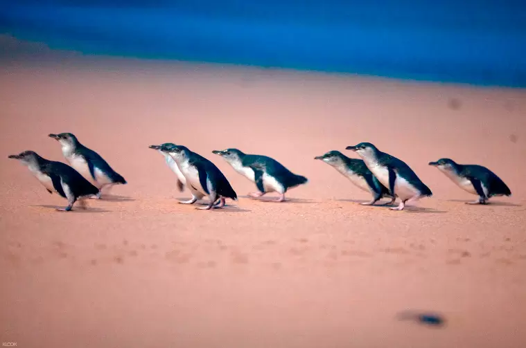 菲利普岛+企鹅归巢一日游【门票,黄昏时分,一睹野生小企鹅们浮出海面,摇摇晃晃地走上沙滩,回到沙丘中的洞穴里】