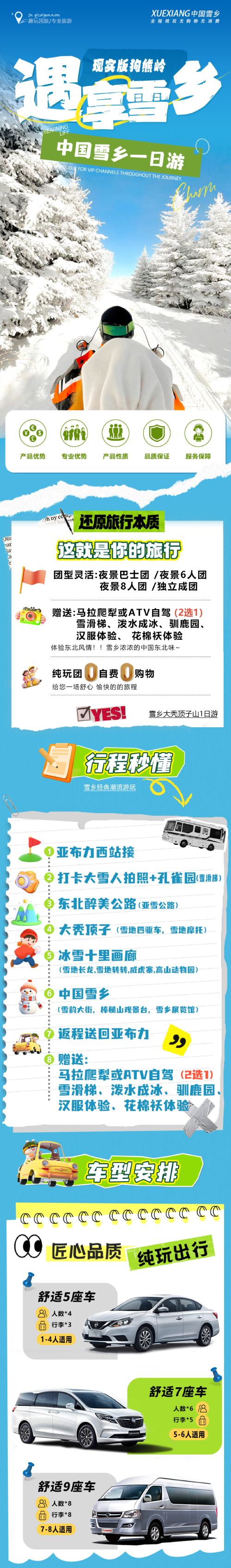 【真!纯玩品质6人团·巴士赠午餐】◈门票全含◈雪乡一日游【亮点一:驾爬犁或ATV驰骋雪原,邂逅雪地孔雀,再与梦幻大雪人合影,超长雪滑梯的尖叫刷爆朋友圈!】