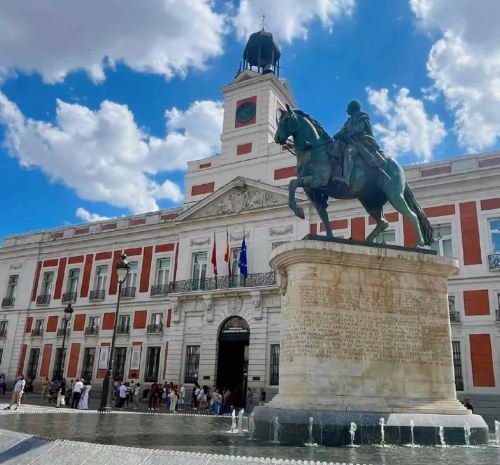 ▲ 太阳门广场是马德里的中心广场,周围被许多历史建筑环绕。广场现在则是重大游行集会和市民游客休闲娱乐的场所,无论白天黑夜,这里总是人潮拥挤,充满活力