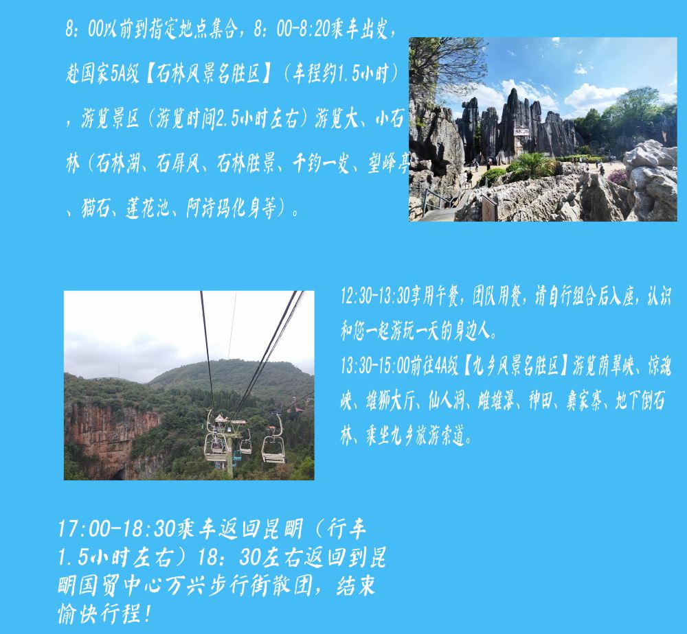 云南旅游昆明周边【石林风景区】+【九乡】一日游美食纯玩一日游【纯玩无购物】