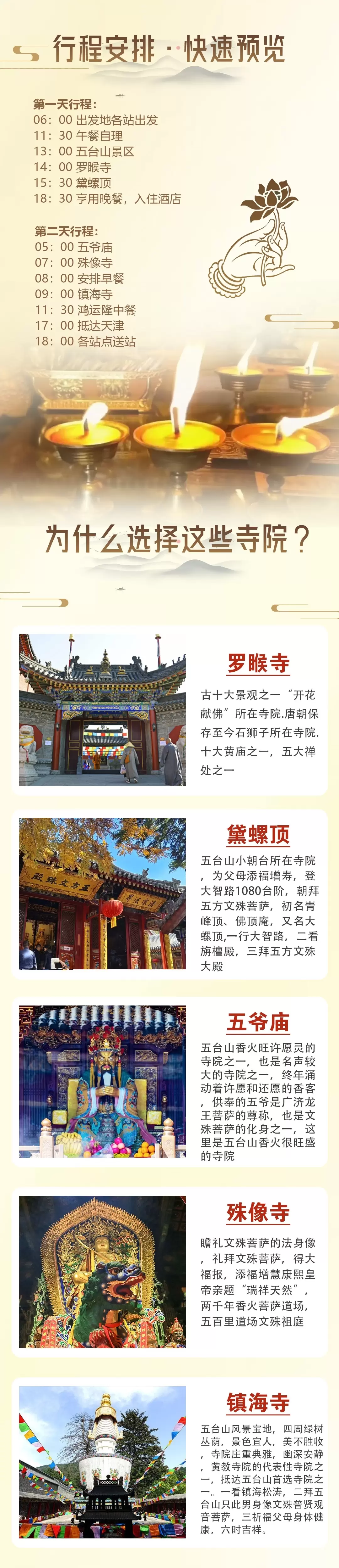 五台山纯玩跟团祈福2日游【天津出发-五爷庙-殊像寺-黛螺顶-纯玩祈福之旅+干净礼佛+静心之旅】