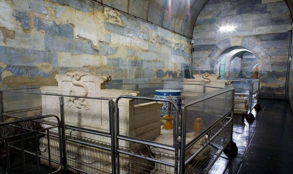 明定陵是万历皇帝的陵寝,地面建筑的总布局呈前方后圆形,含有中国古代哲学观念“天圆地方”的象征意义。定陵早在万历帝生前就开始营建,万历十二年(公元1584年)开工,历时6年方完成,耗银八百万两。陵墓建成时皇帝只有28岁,直到1620年才正式启用,该陵墓整整闲置达30年之久。定陵成为十三陵中的三座陵园之一。