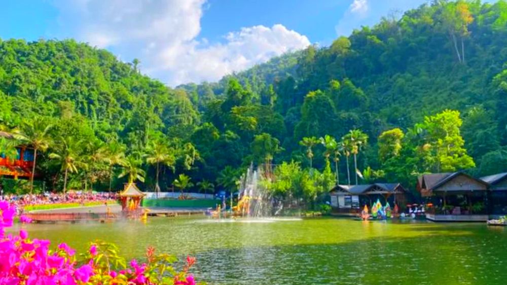 ▲ 这里的游玩项目也超有趣!刺激的丛林飞跃,像丛林探险家一样穿梭林间,感受风在耳边呼啸,惊险又过瘾;喜欢刺激,挑战自我的可以考虑,用时大概1小时。 民俗表演,感受民族风情 公园内还有丰富的民俗表演,能沉浸式体验傣族文化的魅力。演员们身着绚丽的民族服饰,带来欢快的歌舞,热闹非凡。