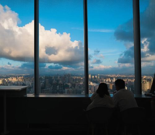 ▲ 朵云书院(上海中心大厦店)是一家综合型书店,位于上海中心大厦52楼,高达239米。书店面积约2200平米,集书房、展厅、会场、讲堂、客厅等多种功能为一体。