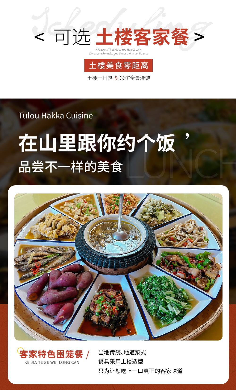 所有土楼线路法定节假日(包括元旦、春节、清明节、劳动节、端午节、中秋节、国庆节)等特殊日期一经预订成功不可退改,由于接待量比较大景区会出现拥堵情况需耐心等待,无费用赔偿。部分出游车上可能会出现没有工作人员,只含当地景区讲解。18人小团人数无上限,可能会出现单双线拼车的情况。