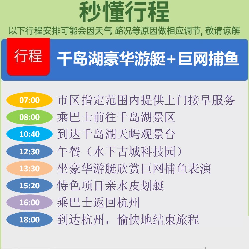 千岛湖休闲游艇+巨网捕鱼+天屿观景台一日游 纯玩零套路【1.品质保证 :纯玩团,不进任何购物店,全程高速舒适无忧,真正的做到享受旅游而非忍受旅游。】