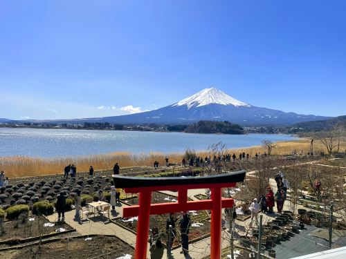 ▲ 【河口湖】大石公园夏季薰衣草花田与富士山相映,秋冬芦苇摇曳,是欣赏富士山倒映湖中的热门地点。