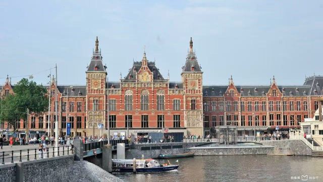 ▲ 阿姆斯特丹中央车站是荷兰z big铁路枢纽,由建筑师皮埃尔·库贝斯设计,1889年落成。其建筑融合新哥特式尖顶与新文艺复兴红砖外墙,钟楼高45米,彩色玻璃窗描绘航海主题。车站建在三个人工岛上,地基由8687根木桩支撑,轨道布局呈放射状延伸至全国。内部铸铁拱顶覆盖星座穹顶壁画,15个站台日均服务16万人次。作为城市门户,其主出口直通达姆拉克大街与水坝广场,西侧码头可转乘运河游船,将实用功能与建筑美学完美结合,被誉为“铁轨上的新文艺复兴宫殿”。