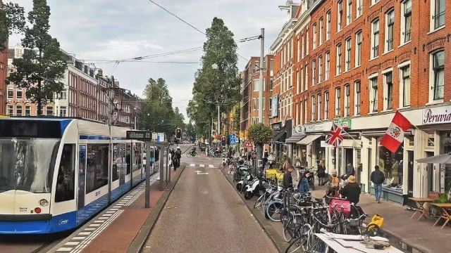 ▲ 阿姆斯特丹达姆拉克大街(Damrak)是连接中央火车站与水坝广场的"城市动脉",全长约700米。这条街道得名于13世纪阿姆斯特尔河上的水坝(Dam)及直线河道(rak),17世纪因阿姆斯特丹证券交易所的设立成为金融业象征。如今街道两侧林立新古典主义建筑,西段保留原证券交易所大楼(现为文化场馆)及铜牛雕像,东段聚集百货商场、咖啡馆和特色手工艺店铺。作为游客进入老城区的第一站,其石板路映衬着运河倒影,叮叮电车与骑行者交织成流动风景线,既承载着黄金时代的金融记忆,又延续着现代都市的市井活力。