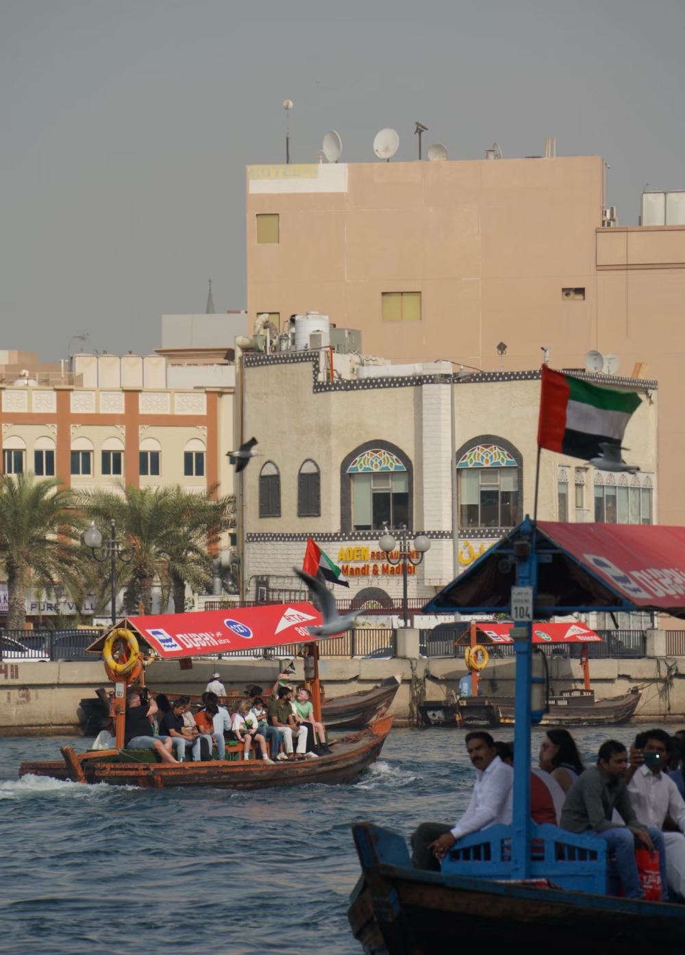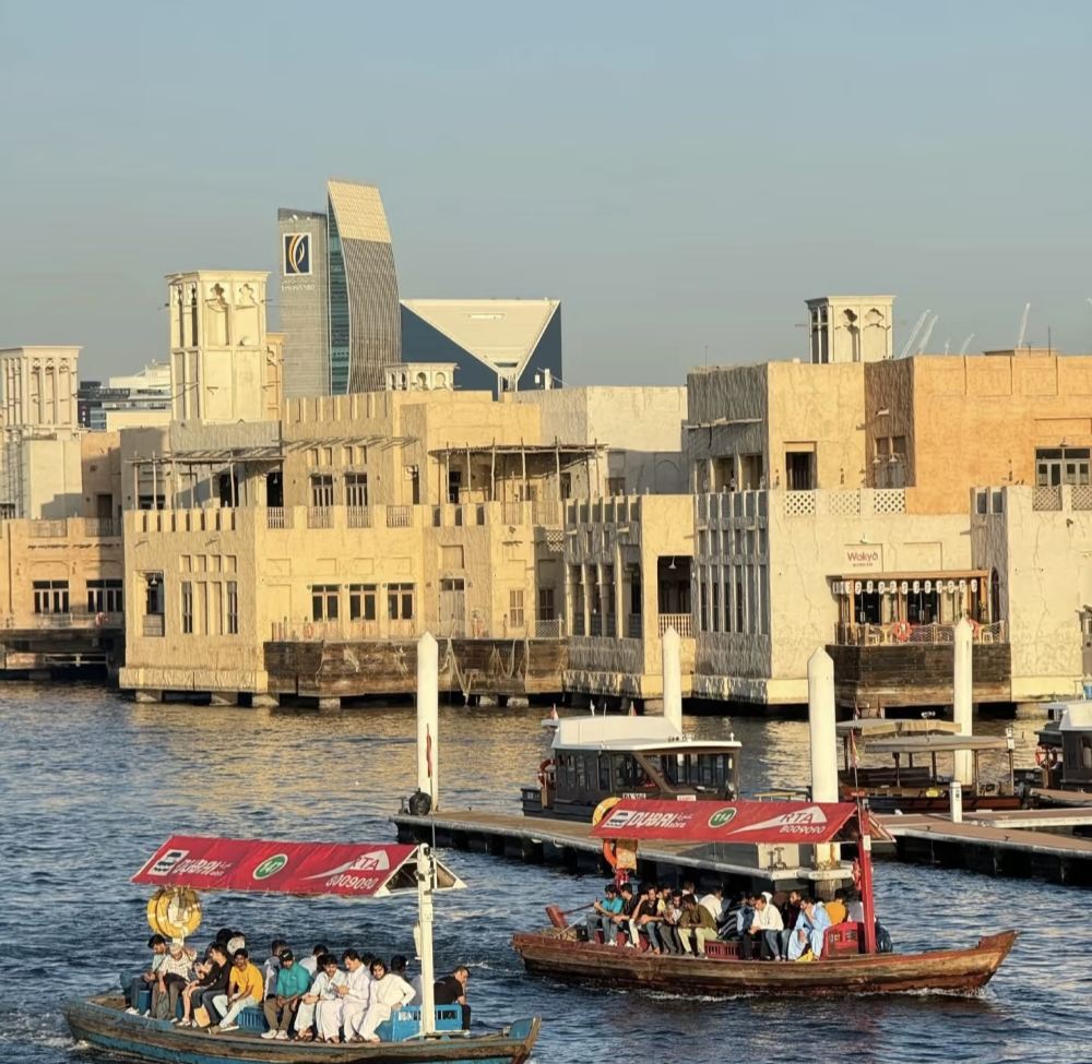 ▲ 迪拜河:日落时分,坐上老城河边传统小船巡游,欣赏两岸新旧建筑交融的风光