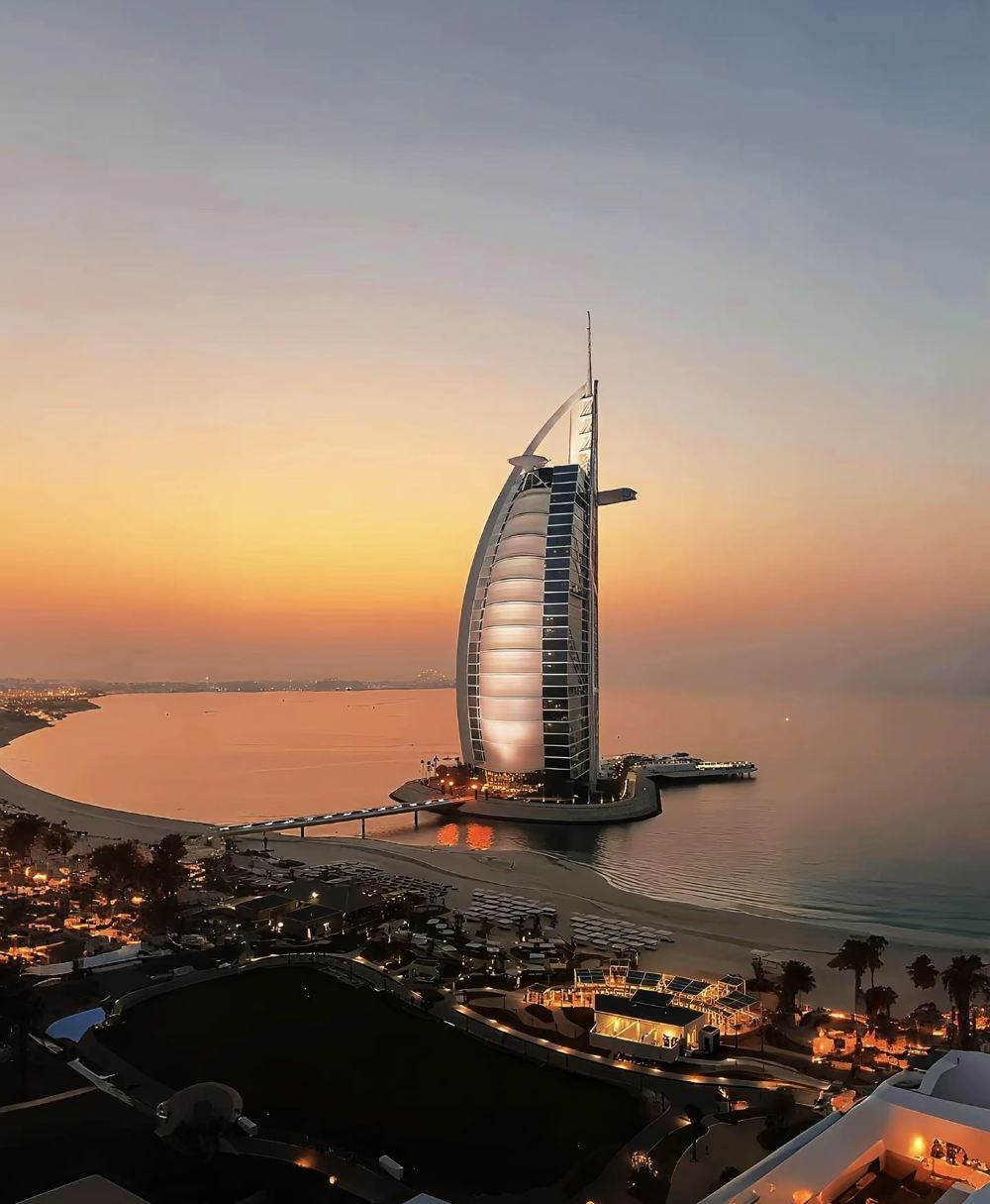 ▲ 帆船酒店:迪拜的标志性建筑,外形酷似一艘扬帆的阿拉伯帆船。可以在酒店外的沙滩或朱美拉公共沙滩享受美景