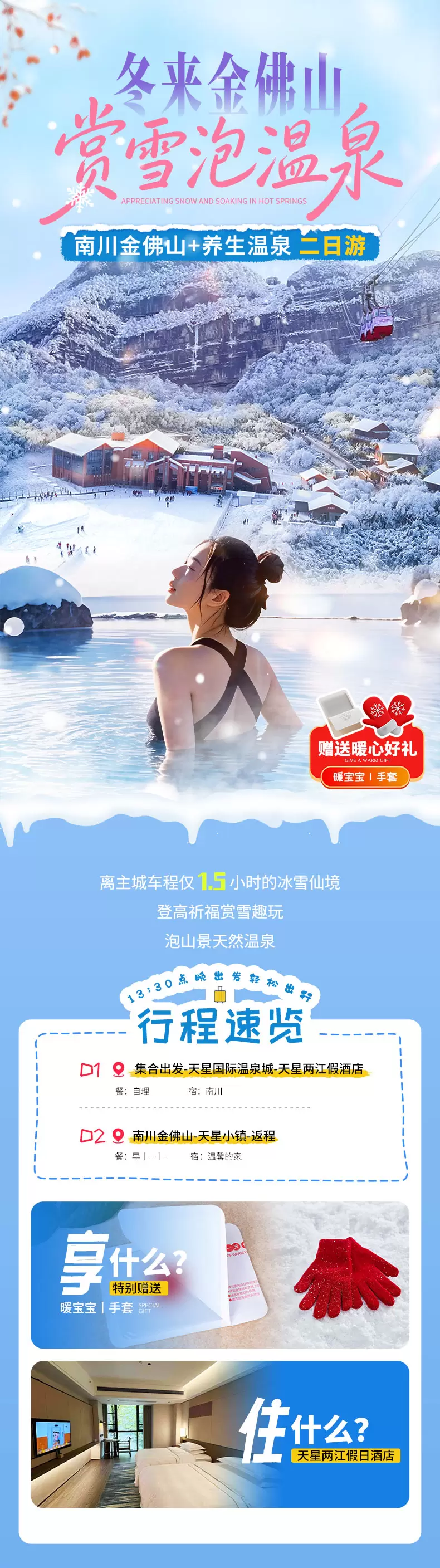 【狂欢冰雪季.中午出发】金佛山+天星温泉二日游. 赠温泉+手套暖宝宝